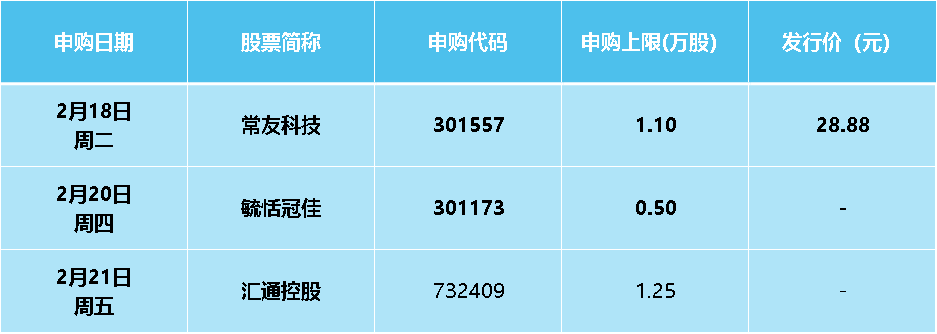 本周(2月17日至2月23日)沪深两市有3只新股申购,其中,沪市主板一只,创业板两只。